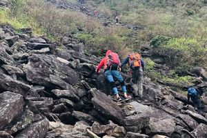 ◆从凌云尖下坡经过比人还高的灌木丛,眼前一下子视野变得开阔,再往前,就是造型奇特的石头,需要在石头上穿行。