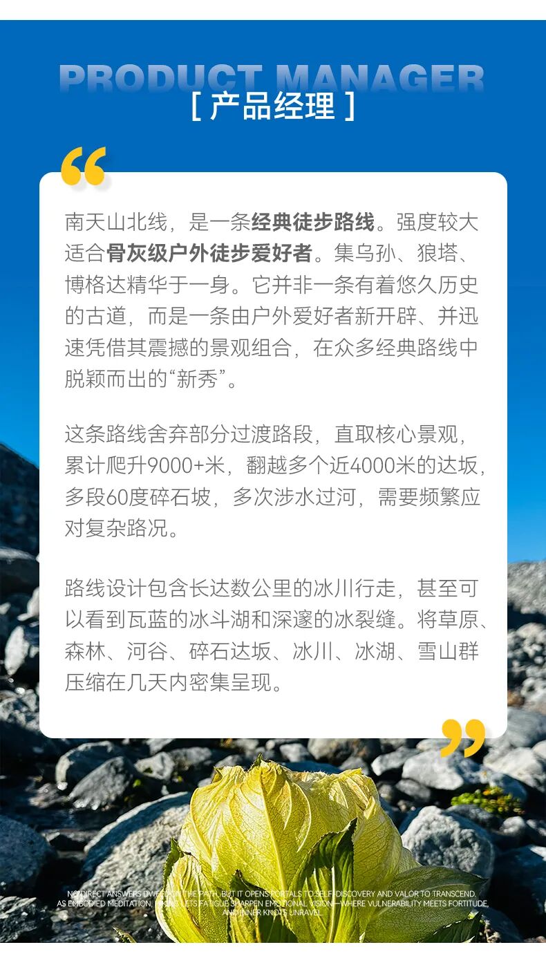 春季是新疆徒步的开端,山区的积雪逐渐消融,河谷与草原开始返青,各种野花如顶冰花、蒲公英悄然绽放。但此时山区昼夜温差大,高海拔区域仍有积雪,部分路段可能有融雪性洪水,需注意天气变化和路况。 |