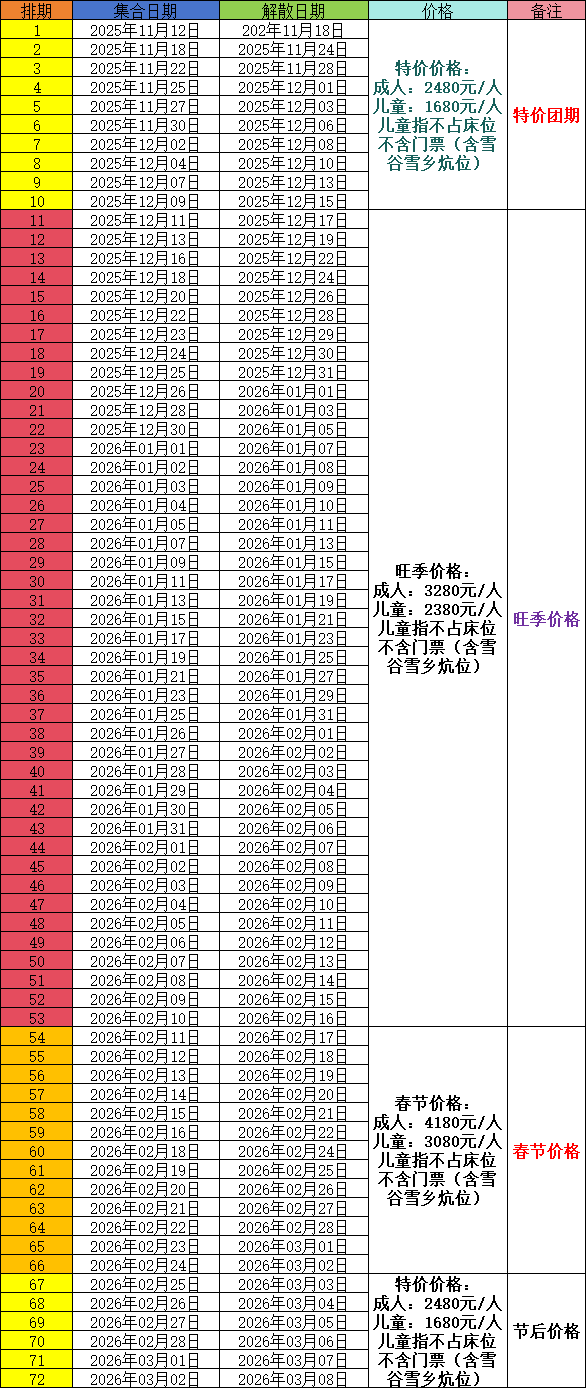 12月11日-2月10日天天发团(不含圣诞、元旦、跨年、春节团期)