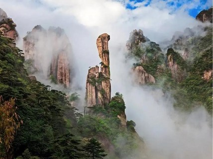 三清山云雾缭绕,时有实现,呈现出一幅独特,绝美的中国画景观