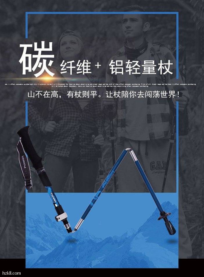 开拓者 碳纤维折叠登山杖 超轻超短五节杖碳素拐杖徒步手杖可伸缩