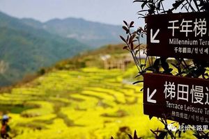 岭南桃花林:每年的3月下旬开始,岭南的2000多株桃花,蓓蕾初开,环绕着梯田村庄,宛如一个粉色的梦境,把覆卮山打扮成色彩斑斓的浪漫世界。