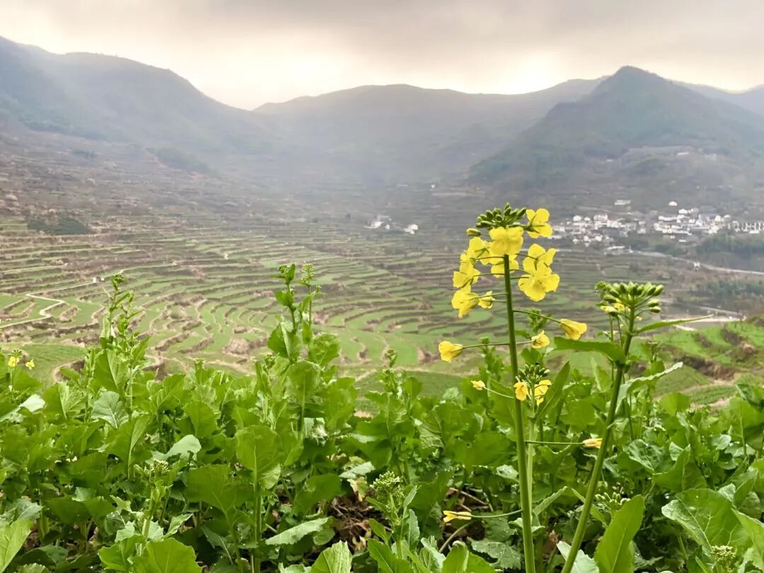 10:00 左右到达覆卮山脚下,沿着村道上山可欣赏壮观的油菜花梯田,