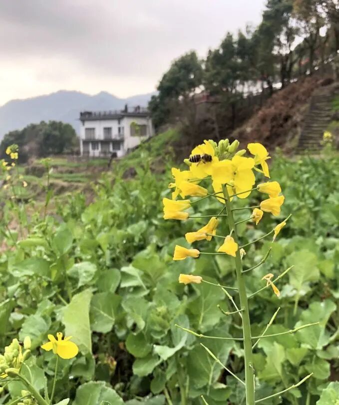 油菜花零星盛开在陇亩之间,