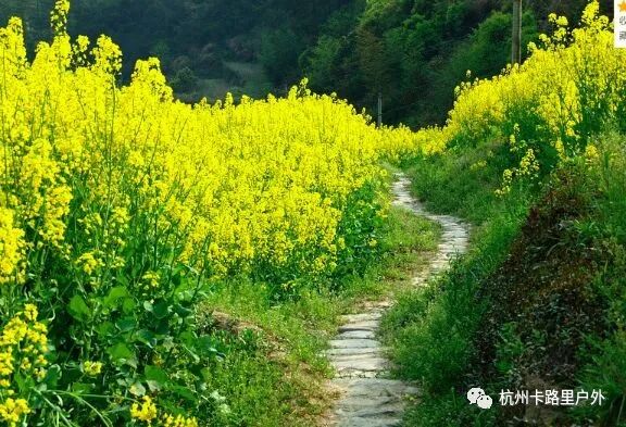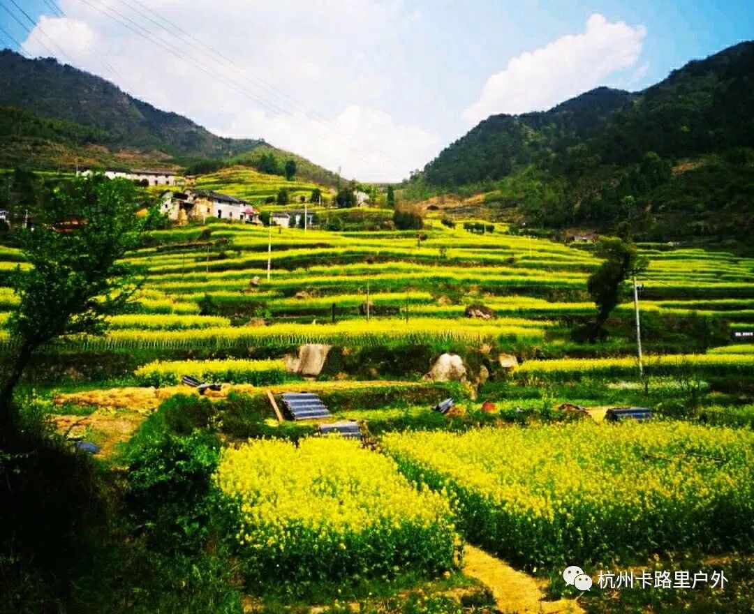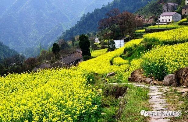 10:00 我们抵达建德胥岭脚村,下车热身。然后从胥岭脚千年古官道开始徒步,进军胥岭村。进入最美徒步段,沿古道而上,两旁是层层叠叠的梯田,从山脚到山腰有500余层。田里铺满金黄的油菜花,满山坡从山顶滑落下来,曲折着沿山坳伸展开来。梯田从上到下独特的立体感,也为赏花提供了多种视角,远近、高低各有不同。