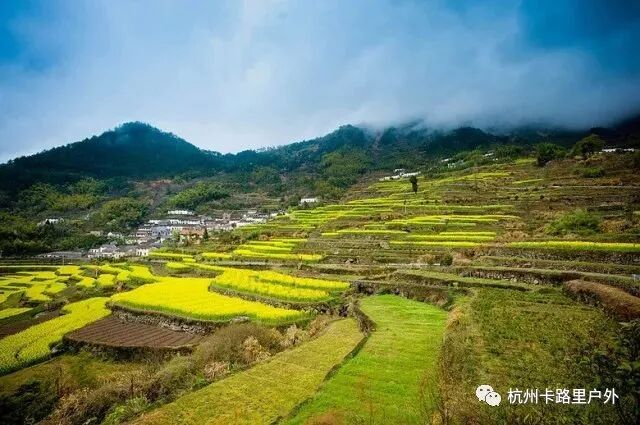 春天,梯田里铺满金黄的油菜花,在古朴的民居和几百年古樟的衬托下,景色耀眼迷人,加上三、二株梨花和四、五株桃花的点缀,犹如一幅完美无瑕的水彩画。
