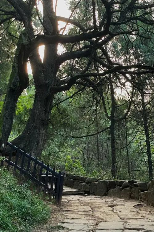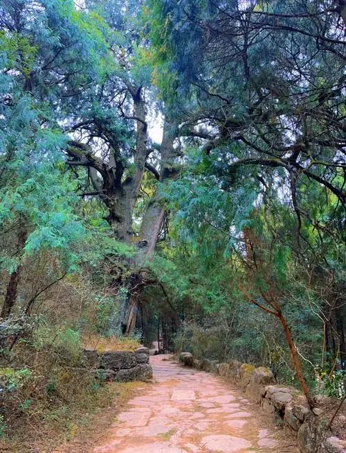 现存古柏8000余株,树龄多在千年以上,最古者可追溯至秦汉。这些“皇柏”枝干虬结如青铜雕塑,树皮皲裂似甲骨文刻痕,冠盖相连形成长达10公里的“绿色隧道”。阳光穿透枝叶,在青石板上洒下碎金般的光斑,风过时万叶沙沙,恍若听见千年前驿卒的马蹄声从历史深处传来。