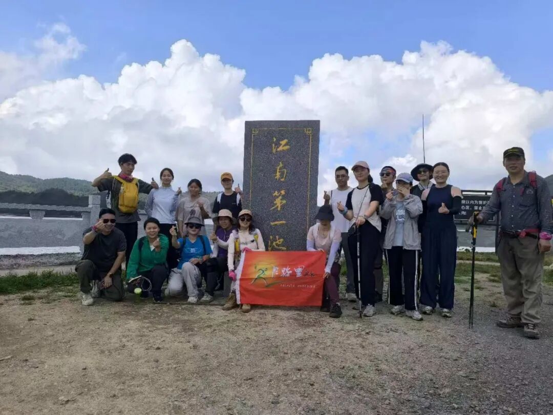 穿过徽浙交界的千倾关,一片蔚蓝的天池展现在眼前,落日的余晖映衬在平静的湖面,眼前的美景就是对辛苦徒步最好的褒奖。