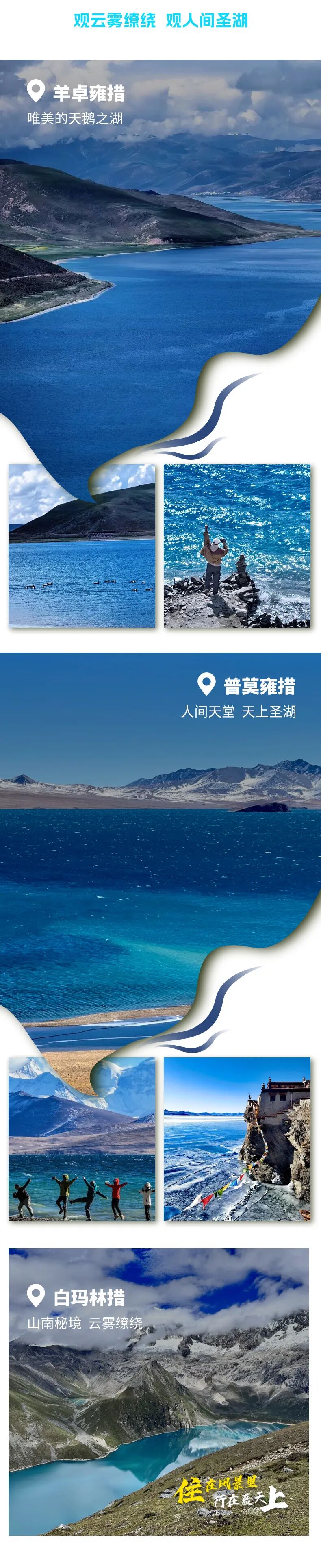 下午游玩【普莫雍错】,这里被称为藏南腹地的“少女之湖”,静卧于海拔5010米的库拉岗日雪山脚下,湖水湛蓝如整块蓝宝石,冬季封冻时形成罕见的“蓝冰”奇观,冰裂与气泡如梦似幻。湖畔牧场与雪山倒影相映,藏族村落沿湖而居,保持着原始纯净。这片离天最近的圣洁水域,被誉为“天空之镜”,展现着藏地最静谧的壮美。
