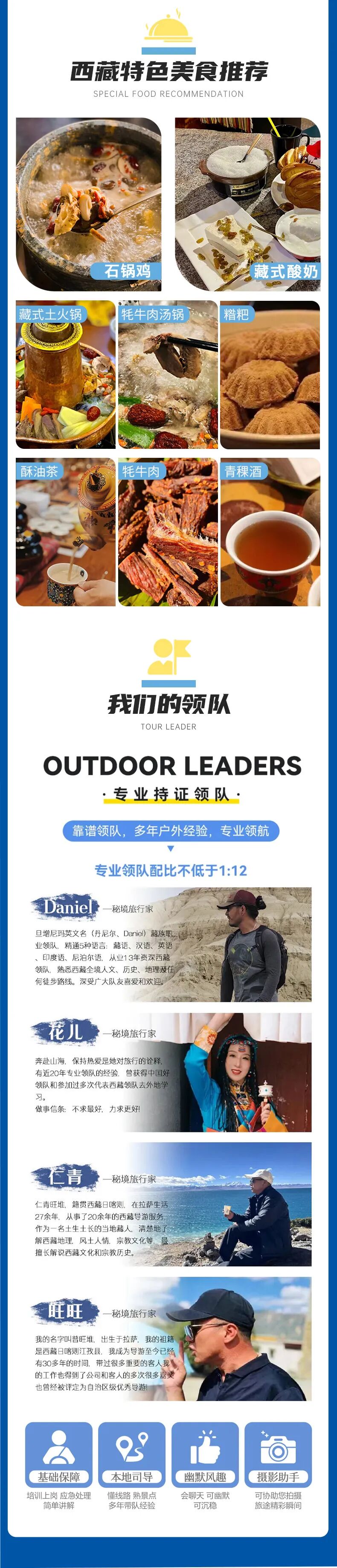 5.领队:领队交通,工资,食宿补贴。每车配备专业领队全程陪同,为大家讲解藏传佛教的文化、行程向导,并保证一团一证。