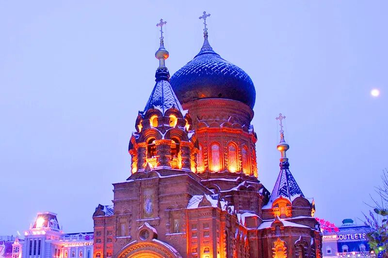 灯光点缀下优雅的欧式建筑、恢宏的东正教堂,