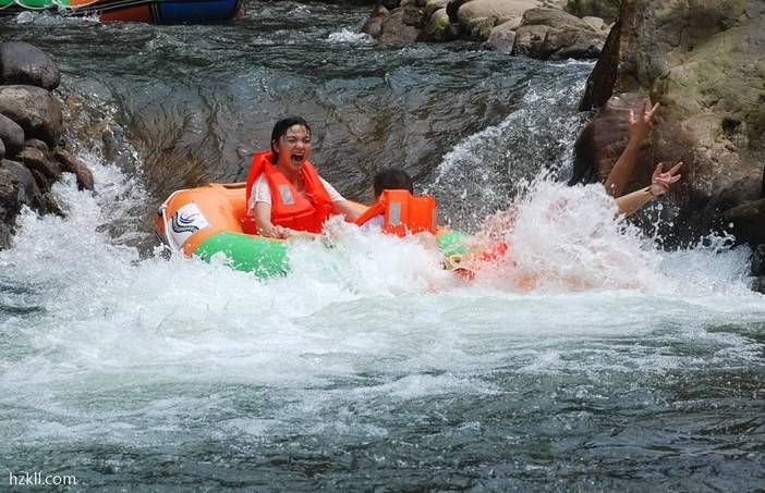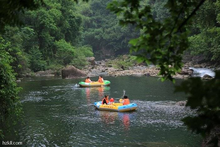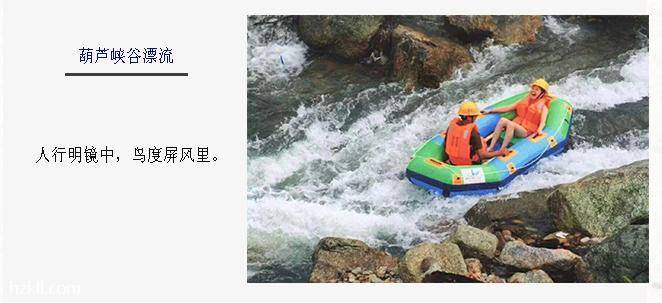葫芦峡谷生态漂流位于七里扬帆景区内,有“浙江生态第一漂”的美誉。漂流全程约3公里,大约需要一个小时左右,最高落差4米,最长落差可达100米。坐上皮筏,在两岸青山的夹缝中,伴着两旁的绿树蜿蜒前行,时而急流险滩,时而平缓水面,一路乘风破浪,一波三折,艇到之处浪花飞舞,尽情感受“中流击水,浪遏飞舟”的感觉,让您体验惊、险、幽、奇的乐趣。